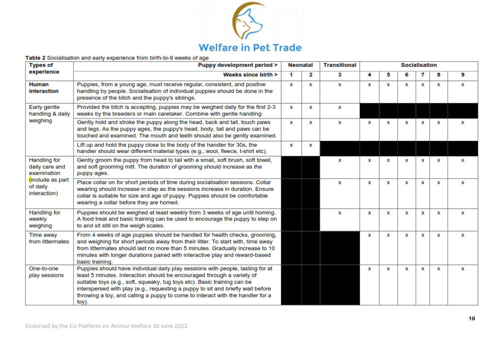 That is why we follow a structured, progressive and science-based socialisation protocol, inspired by the official recommendations endorsed by the EU Platform on Animal Welfare.